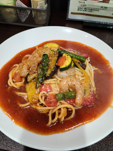 ENGLISH REVIEW!!! This place was recommended to me by the barista of the cafe next door. I've heard of Ankake Pasta before as one of the famous Nagoya/central Japan foods. I tried it once before and didn't eat it again for a very long time. I thought it was just ok. I was impressed when I heard about a shop that specializes in Ankake Pasta. The restaurant is downstairs and you have to take off your shoes so there's a homey atmosphere. The owner is super nice and explained to me the menu in great detail. While waiting for my order, I got several servings of their All-you-can-have onion soup. It is very very good. It reminds me of a French onion soup but much lighter in texture. The ankake pasta that I got was the summer limited edition eggplants and shrimp dish. I absolutely love eggplants and shrimp so I was happy they had it on the menu. They lightly fried them and they tasted so good. The S size pasta was still a big portion. The Ankake itself, which is a boiled down sauce from many vegetables, was so good. It had a pleasant level of heart warming spiciness to it. It had a deep flavor that made me smile the whole time. If you've never had Ankake Pasta before, this is absolutely the...