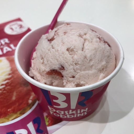 出張で岐阜市に来たので、晩ご飯を食べた後の休憩で1人で寄りました。 「ベリーベリーストロベリー(レギュラー&カップ)(税込420円→バースデークーポンで無料)」をいただきました。 ベリーベリーストロベリー…イチゴ果肉と香り高いイチゴピューレを使ったイチゴづくしのフレーバー。 バースデークーポンを提示すると、店員さんが「おめでとうございます」と言ってくれました。 アイスクリームも、けっこうな量を入れてくれました。 本当にありがとうございました。