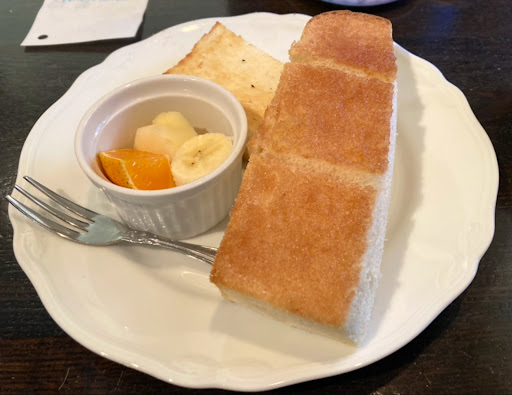 Read moreとても雰囲気の良い老舗珈琲専門店です。 教えてもらうまで知らなかったお店。 ホットコーヒーのモーニングをオーダーしました。なぜかと言うと綺麗なカップでいただけるかなと。 モーニングはシナモントーストとホットチーズサンド、フルーツでした。 SMSで紹介されてたクマちゃんのボトル入りアイスオーレを、やはり次回はいただきたく思います♪ コーヒーはモーニング用なのか薄い味でした。