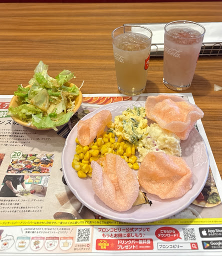 Read more平日の夜、18時頃伺いました。この日は元気を出したくてステーキを食べに何十年かぶりにブロンコビリーさんへ!私はカットステーキをいただきました。 お肉が出てくる前のサラダバーでだいたい食べ過ぎてしまいますね笑 でも好きなものをとって食べることができるので楽しいです。 ステーキもガッツリお肉!!という感じです美味しかったです。主人はステーキとハンバーグの盛り合わせにしました。ハンバーグは目の前で切ってくれて鉄板で焼いて食べるのですが、まだ中が赤く冷たかったようです。食べるのは早い方だと思いますが、全部食べきる前に鉄板が冷めて……もう一回温めてもらえば良かったとは思いますが、なかなか声かけづらいですね… ステーキは美味しくて...