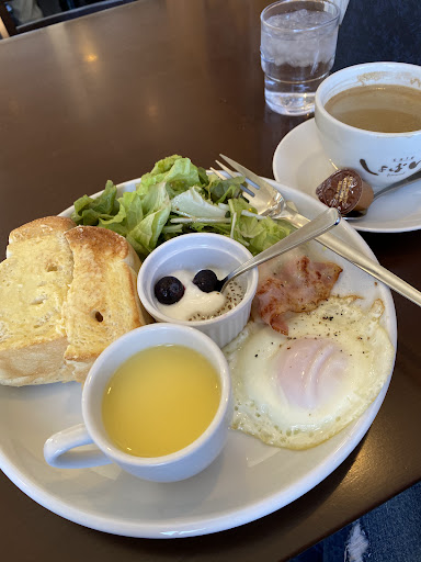 Read more何年か前に、モーニングのパンを目当てに伺ったことがあります。接客、雰囲気よろしく、気分は悪くありませんでしたが、それ以降、伺っておりません。今回、友達からのお誘いを受け、2度目となります。 モーニングは2種類(A、B)から選べる事ができ、前回は大きなパン(A)を、今回は、入店する前からBと決めておりました…