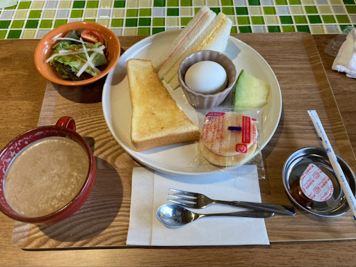 名古屋からきたお友だちと、登山をした帰りでした。いつもモーニングの時間帯は車を停めることができないくらいいつも満車ですが、、