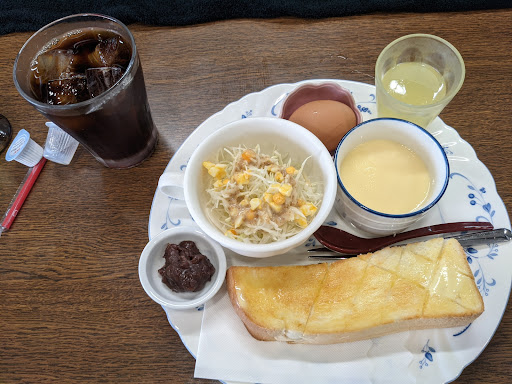・ブレンド ・小倉トースト ・サラダ ・茶碗蒸し ・ゆで卵 ・デザート 450円