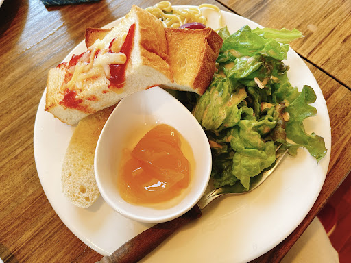 モーニングの内容は、 ・パン(トースト&フランスパン) ・パウンドケーキ ・サラダ ・フルーツ ・お菓子(煎餅) で、ドリンク代金のみ。 終日付けることが可能です!すごい!笑 写真で見ていただければ分かると思うんですが、結構なボリューム。これでドリンク代のみは安いですね!!