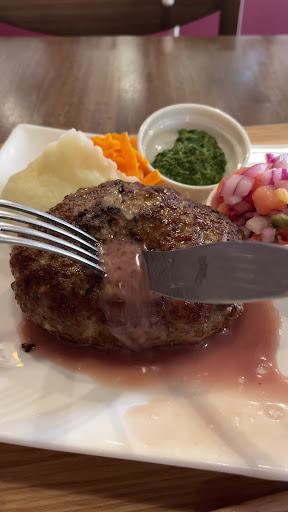 サルシッチャハンバーグは、箸で割ると肉汁がプシュッと弾けてジュワッと流れ出て来ました⤴︎ 見るからに美味しそう♡ 先ずは何も付けずに一口食べると、ハンバーグなんだけどサルシッチャの意味が分かる! 程良い塩味で肉肉しくて凄く美味しい♡ 単体で美味しいモノに、サルサヴェルデやサルサソース、マッシュポテトを付けて食べると、味に変化が出て肉料理を味わっている感じが楽しめます♡