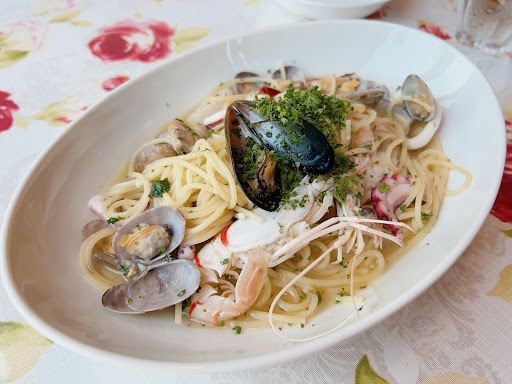 パスタはここのペスカトーレビアンコが1番の好物です。何種類もの魚介の味がバランスよく混ざり合って、麺との相性もいいんですよね(^.^)オイル系が好きでよくパスタは作りますが、ここのパスタには敵いません笑。 家族はクリーム系のカルボナーラが好きみたいですが、これも一口食べると美味しい。ピザもバケットもモチッ!パリッ!ですし、本当に誰にでもおすすめできます。