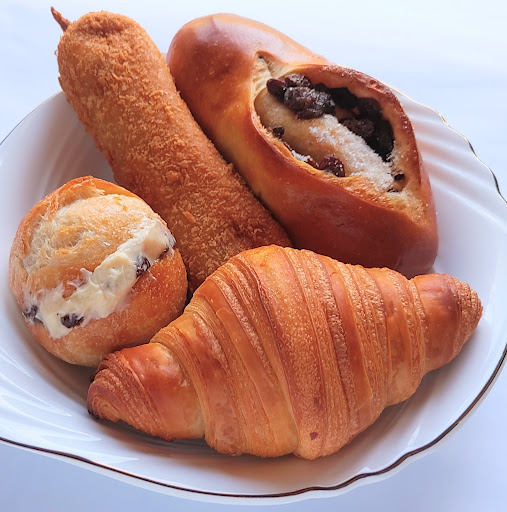 Read more初めて🔰購入。 クロワッサンはさっぱり系。バターのコテコテ感はありません。 カレーパンは色々な形があり、具や辛さがそれぞれ異なるようです。 長細いのを買いましたが、パン生地がモッチモチ。カレーは甘口かな!? 1番のお気に入りは、レーズンバターサンド。(サンドって名前だったかな?)フランスパン?プチポワン?生地がめちゃめちゃ美味しいです。パン生地とレーズンバターのコラボが最高🥇 ブドウパン🍇はコッペパンみたいな生地に🍇と砂糖が同居してます。