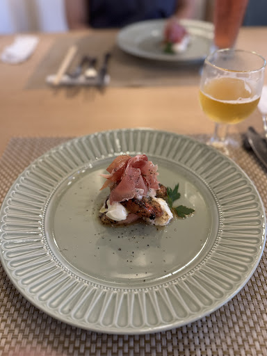 前菜の桃と生ハムから最高。 桃はコンポートかと思うほどジューシーで 素材の良さが際立っていた。