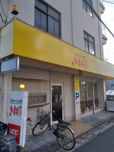 早田大通1の交差点の裏路地にある白いビルの黄色地に赤字のひまわりカフェレストラン。