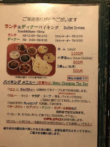 先月に引き続き訪問です。 水曜日の19:40くらいに行きましたが5組くらいですぐに座れました。 ばあちゃんと下の娘と入りました。 前回同様にバイキングとチーズハニーナンとマンゴーラッシーも追加しました。 ナンはパリッとしていてとても美味しいです。 チャパティの方が味が好きかもです。 美味しいので一枚ずつ追加しました。 マンゴーラッシーが濃厚に改善されていてとても嬉しいです。 ありがとうございました。 今のメニューも美味しいのですが、カレーの種類も少しずつ変え...