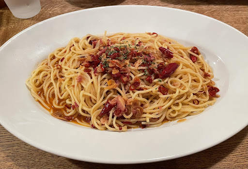 Read more休日の19時過ぎの訪問でしたが特に待つ事なく入店できました。 バリューセットが有るパスタと無いパスタ。セットメニューもパン食べ放題だけとかサラダも有りとか組合せがありすぎて考えるのが面倒になってきます。 ドライトマトのペペロンチーノ:生パスタはソースを吸いやすいので調理が完了したら早くお届けして欲しいかな。大盛りは2倍だそうです。多すぎてビックリしました。 モッツァレラとしめじのトマト:しめじが美味しい。モッツァレラは後乗せなのでしょうが熱が足らないのか溶けてこない。無しでもそれなりに美味しいのですが、勿体無い。 バジルのトマトソース:フィットチーネに変更しましたが、無難に美味しいです。ブラックオリーブが好みの分かれるところでしょうか。私は好きです。 パン食べ放題とは言え、店員さんが巡回して来ないと頼めませんし、店員さんが少ないから呼び難いし食べたいようには食べられない感じで微妙な気持ちになります。 支払い時にAEONカードを提示すると5%引きになります。dポイントクラブでもクーポンありま...