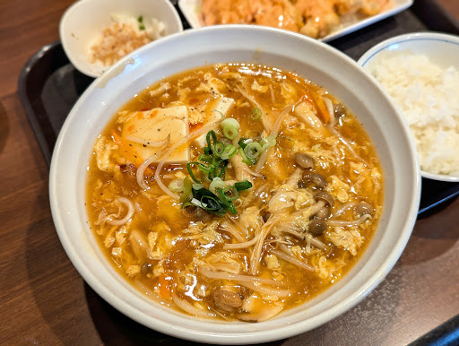 注文したものは、他の人のコメントを見てランチセットでラーメンを酸辣湯麺で注文。セットでボリュームもありこれで1000円いかないのはコスパ凄い! ラーメンは、結構酸っぱく好きになったら癖になる感じで美味しかったが好みは分かれそう。びっくりしたのはご飯。最近のラーメン屋は米のコストが上がっているので、どこの米なのか分からない米の味が多くなってきているが、ここの米は美味い! 全体通して満足度高い!