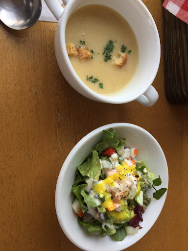 Read moreランチで利用しました。「小学生以下」は入店お断りの張り紙が。確認すると「小学生未満」の意味だそうです。 店内はゆったりとした広さで、高い天井と開放的で大きな窓があり、開放的で落ち着ける雰囲気のお店です。味もバランスの取れたおいしさです。ただ、サラダのレタスの茶色くなっている部分が選別されずに出されてたのはいただけません。 もう一層の...