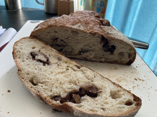 特に食パンはイギリスパンの様に上が膨らんだ形🍞で上の焼き目が香ばしく、そのままでもしっとり美味しい💗 カンパーニュは四つ葉の発酵バターが合いますねっ。 楚々は塩分すごくひかえめなのですが、かめばかむほど青紫蘇とチーズの味が生地にあっています。 焙茶生地の物も、ホワイトチョコの甘みとドライクランベリーの味がマッチしてました。