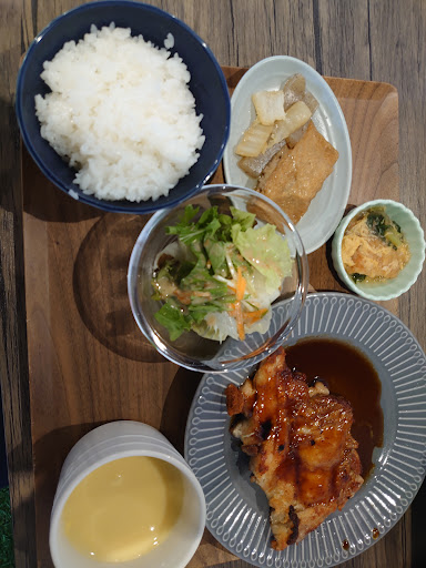 このお店の 素晴らしいのは、メイン料理だけでは ありません “Delico” の名前通り、付け合わせのお惣菜 が めっちゃ 美味しい のです 日替りデリ この日は、ネギが添えられた 春雨のすき焼き風煮(?) と カボチャとナッツの炊いたん でした どっちも 美味しい! ナッツと一緒に炊いたカボチャを食べたのは初めてでしたが、合いますね ナッツの 洋風な香ばしさと 食感が、和食の炊きものに とても良いアクセント です ご飯が どんどん無くなります お店の方が、あれこれ勘考して 和洋様々なデリを、毎日 提供して下さるので、これなら 毎日通っても 飽きないでしょうね