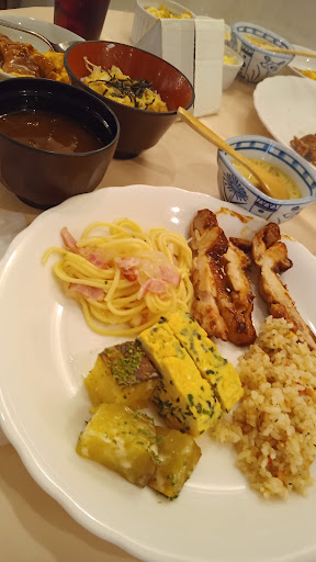 Read more平日、月曜日の午前11時に3人で訪問。 ランチバイキングは、事前の下調べでは、土日祝日のみ90分制ということだったので、平日なら11時から14時30分まで利用できると思っていました。 ところが、行ってみると、店の前のランチバイキングの掲示には90分制と書いてあるだけで、「土日祝日のみ」という文言が消えていました。店に入ってから、店員さんに「今日は平日だけれども90分制ですか。」と聞いたところ、「いえ、混んでいなければ別に構いませんよ。」と言う返事でした。 おかげで、3時間ゆっくり食べて飲んで話をすることができました。 料理の味は、格別美味しいというほどではありませんが、かといって、まずいということもありません。値段相応という感じです。 私は、から揚げ、お好み焼き、ハルサメ、野菜炒め、野菜サラダ、味噌汁、しそ入りおにぎり、茄子の漬物、プリン、ケーキ2種類、白玉・あずきのせアイスクリームなどを食べ、ウーロン茶、りんごジュース、ホットコーヒーを飲みました。 もともと腹いっぱい食べようとは思っていませんでしたので、これでも控えめの量にしました。 この日は、結局満席になることはなく、ゆっくり話をすることができましたので、満足しました。 これで、1人当たり1,210円なら、3時間の席料を考慮に入れると、お得だと思います。可能なら、平日の午前11時からの利用をおすすめします。 【2024.10.3追記】 2024.10.3に訪れたところ、一人当たり料金が1,430円に値上げされていました。 諸物価高騰の折、やむを得ないこととは思いますが、割安感が失...