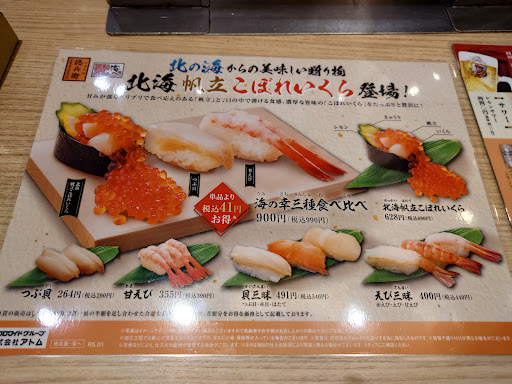 Read moreやっぱりお寿司屋さんはカウンターに限りますね。主人と一緒にカウンターに二人並んで着席させていただきましたが、目の前でテキパキと調理しておられたのは、店長さんとおぼしき寡黙な板さんで、私達の会話の中の寿司ネタについての疑問をさりげなく汲み取って、オススメのネタを提案してくださったり……回転寿司にいる感じがしませんでした。肝心のネタのほうは、おそらく鮮度が良いからでしょうが、歯応えは十分ですが、味は濃厚ではないな……と主人。これについては好き好きですね。私は十分美味しかったですが、いつも「食べ物と◯は腐りかけが美味い」と言ってる主人には、物足りなかったようです。 接客も爽やかでさりげなかったので、気兼ねなく楽しく食事を楽しめました。またこちら方面に来た時は、利用...