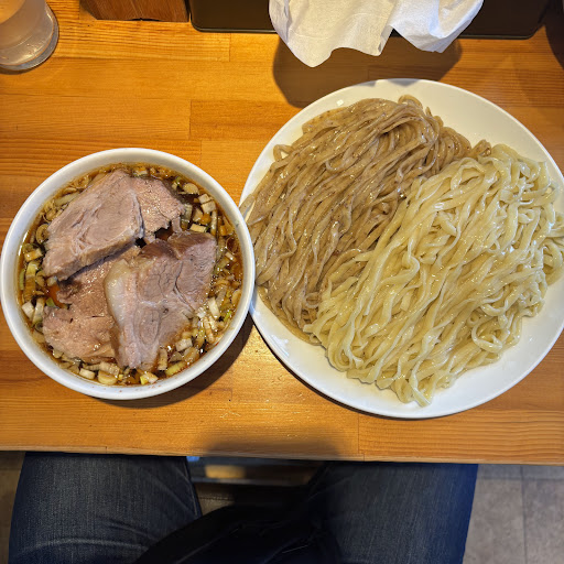 Here’s what I ordered: Roasted Two-Colored Tsukemen ¥1100 Special Flat Noodle Topping ¥200
