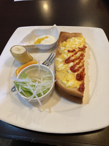 モーニング・サービスは、エッグ・トースト、サラダ小鉢、カット・フルーツ2種、ヨーグルトが載ったプレート・モーニング。ドリンク代も500円前後で、リーズナブルです。 座席は20名程度。駐車場は店の前と脇に10台程度あります。 落ち着いた静かな店内で、クラシック音楽が控えめに流れている他、お客さんも静かでした。ご夫婦お二人で切り盛りされている様な感じです。カウンター奥に色々なカップが置かれており、昔からある純喫茶の様であり、でも古さが感じられる様な事はありませんでした。