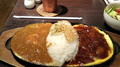 生姜カレーは鶏肉を使用しており、名の如く生姜を感じ、中辛です。生姜による辛さが加わっているので、どこかキレの良さがあります。 ハヤシライスはとっても美味しい!ワインの風味を強く感じ、粘稠度はやや液体に近いサラサラ系なっています。 両者の違いも際立ち、また玉子がうまくまとめてくれており、空腹にはぴったりでした。