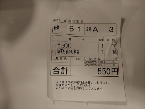 近くには朝から食事ができる施設が無く、開店を待って10時OPEN後に行きましたが、若い男性が一人で対応してて、開店から客が押し寄せ私達が初めの客にもかからわず、食事提供まで15分かかりました(泣)