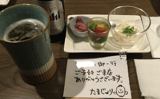 Read more2024 7 23(火)熱い🥵 ・久しぶりにジィ-さん会 ・¥4000-ドリンク2杯付き ・お任せ ビール小瓶・焼酎ロック ・追加等(カシワ天)ドリンク2杯 ・1人¥5000-市支払いになった⁉️ ※料理内容から¥5000-は微妙だ・・・ ※接遇は非常によく⭐️5だが ※支払いから見ると⭐️2〜3だな〜 ※ドリンクの量が1つ一つが量少ない ※飲兵衛〜のオラ達には 残念🫤 ※いつもの様に若い女性達で満席とは ならなかった・・・ 料理写真追加 前回は良かったのに・・・