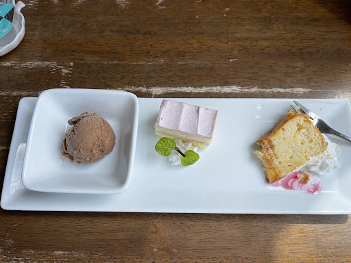 最後にデザートは、種類豊富で期待しましたが、冷凍の香りがするケーキでした。 完食できない残念なお昼ランチとなりました。