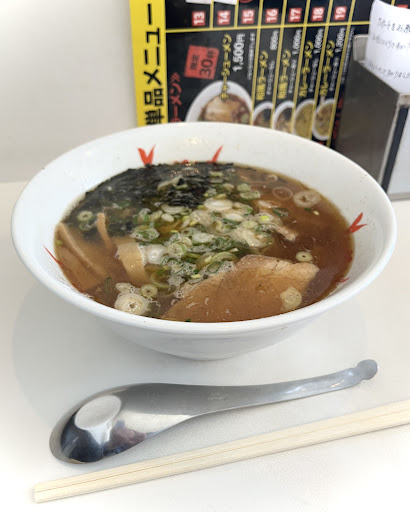 Read more鵜沼西町造り酒屋「菊川」前旧店舗ぶり 気がつけば四半世紀後の 2025年5月移転後初利用 5月鵜沼西町の大安寺川ではそろそろ ホタルが観察できる時期ちゃうかったかな さて岐阜市の現地に来てみれば アメリカンモーテルか!!と見まごう店構え 表門ヒラヒラに車で凸乳‥できませんので 然るべき所に駐車し歩いてヒラヒラを潜ります‥ ‥すると 普通の人んち風玄関出現で軽く戸惑う 平日ランチ時終わりがけにて半分強の客入り 空席あったが スタッフ人数と 店内レイアウトや席数キャパの影響だろうか 席案内もオーダーへの応答も配膳も やや時間を要した 内外装のムード含めて セカセカしないのが当店の持ち味なのだろう 和風ラーメン・チャーシューあり1000円 繰り出された一杯は旧店舗を思い出せないけど 箸上げしやすい感触軽い縮れ麺 麺量は少なめ 茹で前110gくらい? プースーは鰹豚主体 わずかに脂泡も見られる 加糖?みりん?で軽く甘口仕上げ カエシしっかりでボンヤリには陥っていない 節類砕片に刻み海苔 やや過剰な小口切り葱で 舌触りはチョイとうざこい 新しいか古いかで言えば今や古典的 そこで なんといってもハイライトは 皆様もそうお思いだろう?厚バラチャ2塊 これも気を衒ったり 今日日どこでも見かけちゃう 「釜焼」「レアチャ」「部位や仕上げで3種MIX」 とは無縁だけど臭くないし良い味付け 手堅く仕上げた食べ応えあるもの 麺量の少なさ(主観)を完全に補って...