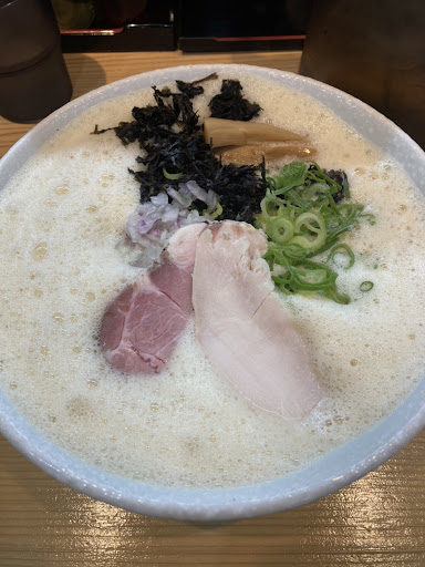 2023.7 ・泡の鶏G麺大盛野菜マシニンニク抜き(のはずだった) 待合室で食券に野菜とにんにくの量をチェックするスタイルでした。説明書き通りに、にんにくのところに大きく✕と書きましたが何の嫌がらせか大量のにんにくが乗ってきました(写真参照)‥にんにくはティッシュに包んで全部捨てました。 泡の鶏Gというだけあって泡がわんさか。 スープは一口目は濃く感じましたがもやしの水分が出たのか最後はやや薄く感じました。が、薄い用に追加のラーメンタレが一緒に提供されるのでその点は心配なし。麺は太麺でもっちもちでめちゃうま。チャーシューは赤身と脂のバランスが良くホロホロと柔らかく結構濃い目な味付け。 割と多めな一味唐辛子?が振りかけられているので辛いのが全く駄目な方は注意。辛味は得意ではありませんがわたしは全然気になりませんでした。美味しくてボリュームも満点ですがその分値段がちと高い。チャーシュー少なめもあれば嬉しい。夜まで胃もたれがすごかったです。 とりあえずにんにくの嫌がらせは勘弁してほしい笑