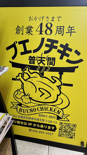 Read more本当に恥ずかしい事なのですが店名で判断してしまい浦添のそれと同系列店だと勘違いしていました。ごめんなさい! しかし本場アルゼンチンご出身のご家族が営む普天間のブエノチキン、むちゃくちゃ美味いじゃないですか!表面カリカリ中はフワフワ&ジューシー!丸焼きを2名でいただきました。満腹なのに胃もたれしない。肉なのにヘルシー!スタッフの皆さんも気さくで親切、途中でスコールに合いましたが店内で雨宿りさせてくれました。その間も電話注文が次々と入り、テイクアウトのお客様も絶え間なく訪れていました。本当に親切にしていただきありがとうございました。キャッシュレスにも対応していて、お支払いもスマートです。 ただ、いくつか注意点もあり、まずは駐車場が無いこと、そしてイートインメニューとしては定食のような形式ではなく、メニューは鶏肉とエンパナーダ(パイ生地の中にスパイシーな具材の入った物これも美味しかった!)しか無く、ドリンク類も外の自販機で購入して持ち込む形になります。4人掛けのテーブルが2つなので、必然的にテイクアウトがメインとなるので地元のお客さんが多いのかな? また近々沖縄に来る予定があるので、必ずリピートします。皆さんにもがっつりニンニクの載った普天間のブエノチキ...