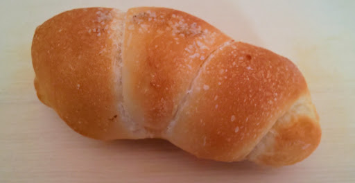 【初訪問】 せっかく中城村までやって来たので行ったことの無いパン屋を検索。中部商業高校の正門近くに『サンモンテ』というパン屋がヒットする。行ってみなくては・・・ と言うことで、平日午前11時半頃にお店に到着した。綺麗な店内は、パンが陳列していた形跡が残っているものの、ほぼ売り切れのようだ。聞くに午前7時にオープンして、既に1回転終わった後の様子(^^;) さすが県立高校正門近くにあるとそうなるか(笑) nobutaの好きなハード系も既に朝の分は売り切れ、午後にもう一度並ぶんだそうだ。 なかなか住まいから遠い場所なので来る機会も限られるが、時間的なタイミングも要検討が必要だなぁ(^^;) 取り敢えず、陳列している中から選んでいくが、菓子パン系ばかりなので、妻子が食べる分を購入。自分のために『塩パン』110円を二個選択した。 外の通沿いにある看板には美味しそうなカクスルート(サンド系)が写ってるけど、無いものは仕方がない。