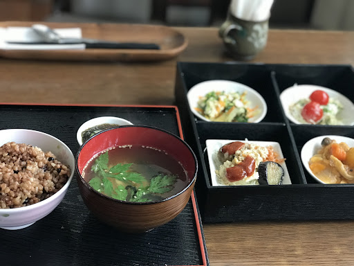 Read moreお店の駐車場は常に車が停まっているので、前々から、とっても気になっていた、お店です。 店内は、落ち着ける雰囲気が良く、ゆったり出来ました。常連客さんが、多い感じでした。 気になる『酵素玄米ランチ』で、ドリンクを『長命草ジュース』を頼みました。 出された料理は小皿に色んな種類のオカズが有り、美味しかったです。私の好きなパパイアイリチャーも美味しかった。 玄米は、初めて食べましたが味が良く、みそ汁、デザートのヨーグルトも、美味しく、ドリンクは緑色だけどエグミが無く甘口で飲みやすく美味しくって、良かったです。 店員も親切丁寧に教えてくれるのも良かったです。 なので、他の料理、飲み物を次に来店した時に頼みたいです。 見た目が綺麗な盛り付けなので少し時間が、かかると思います。急用が無い時に、マッタリするのにオスス...