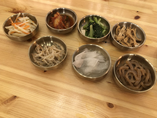 Read moreNice selection of namul (free small side dish appetizers), but kimchi wasn’t included. We had the squid (well cooked and a bit spicy), chapchae (served warm, a bit too sweet), Korean pancake (very thick and undercooked), Kimchichiggae (kimchi soup - flavor was good but was very different from the traditional style, not hardly spicy at all), and bulgogi kimbap (pretty good). Next time I want to try the nangmyeon and sundubuchiggae. Overall, the menu selection was great, good portion sizes, but definitely adjusted to suit a Japanese palate. The front entrance faces 58. Parking is available on the back side of the building, in front of the tombs across the street from the back entrance. Park only in spots designated with the restaurant logo (tires are mounted on the wall so you can back your car all the way in). If you enter from the back of the building, you are on the 1st floor. Take the elevator down to B1 (watch your step getting in/out of the...