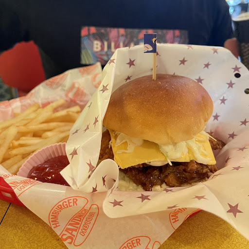 They make burgers the American way. Great fries, real ketchup;great price. Fun atmosphere and decor. K-pop videos play on a TV screen, mixed with American hip-hop and pop. Nice ladies work there and I have liked everything that I have tried. (Had about 6 things on...