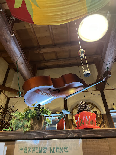天井には何故かコントラバスが飾られていて、不思議な店内。