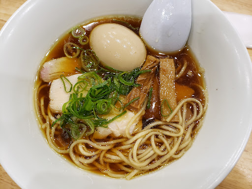 Read more初入店。普通に美味しい。 ☆☆☆麺 プラス100円で大盛り注文。大満足な麺量でした。 ツルツル感が半端ない。 第一印象は、口当たりの素晴らしさ。 手作りのこだわり麺だと思います。 他で食べた事ない独自の麺。 しかし、麺自体の味は薄く、味的に美味しいとか、美味しくないとかが、説明しづらい。 ☆☆スープ 醤油をチョイス。 他の方の口コミで期待していた、あっさりで出汁がきいたスープ…とは感じなかった。 スープも味は薄め。 コクや旨みはあまり無い。(飲みやすい笑) 驚いたのが、スープに浮いているギトギトの油💦コッテリもいける口なので、良かったが。(写真の器の縁の油) ☆☆☆☆チャーシュー チャーシュー麺をチョイス。 上品で柔らかく、美味しかった。 鶏チャーシューも入って2種類のチャーシューを楽しめた。が、豚チャーシューの方が好きだったので、豚に統一とか選ばせてもらえると尚よし。チャーシューも他でお目にかかりにくい、独自な感じが素晴らしい。 しかし、かなりお高く、コスパ悪し。 連れは塩ラーメンをチョイス。(味玉は別売りトッピング) 塩ラーメンでも、ほぼ自分と同じ感想とのこと。 再入店確率: 1.3...
