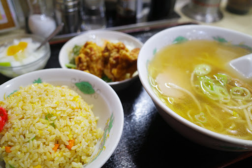 チャーハンは、脂こってり+味濃いめ好きには刺さる一品。 唐揚げは、卵大サイズのもので、衣サクサクで食べごたえがあるものでした。
