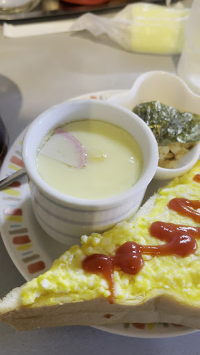 Read moreモーニングで8時過ぎにお邪魔しました。 メインの通りから脇道に入る感じなので 初回は戸惑うかも 駐車スペースはかなりあります。 エッグトースト、茶碗蒸しをオーダー(大皿) 小皿はお母さんがお盆の上に乗せて持ってきて、 どれにしーましょ?と聞いてくれます。 サラダをチョイス。 このサラダが大当たり! 結構ボリュームある上に美味しい。 エッグトーストもケチャップが良いアクセントで美味しい 茶碗蒸しも中にうどんが入ってて普通に美味しいです。 総合的...
