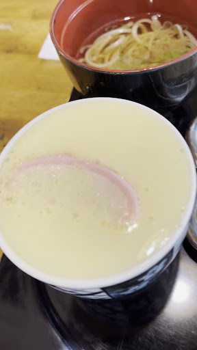 茶碗蒸し、素晴らしい 器に なみなみと溢れんばかりです 注意深く スプーンを差し入れます お出汁のきいた卵液の味付けが絶妙で、食べる…と言うより 上質な汁物として飲んでいただく感覚ですね ランチの定食には付きませんが、+200円で単品オーダー出来ますよ (2024.04現在) おすすめ です