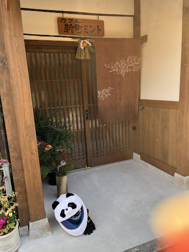 木枠の扉にのれん。 カフェ新町ミントという看板、食べログには情報もなかったのでどんなお店かわからなかったけど。。。 扉を開けると、笑顔とともに「こんにちは」って!!