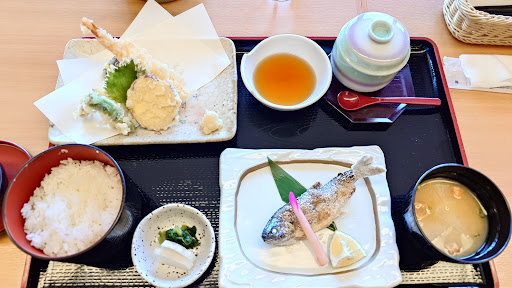 レストランの入口のボートに書いてあった、 「天ぷら刺身定食(1080円)」を頂きました。