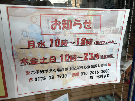 Nice cafe with extra entertainment spaces and tropical-inspired decor. It is surprising large and open inside. Seems like a great place for a group to go. They have a couple karaoke rooms, but Iโve never tried them. The menu is your usual Japanese cafe options and prices (meaning a bit expensive). The taco rice was surprising spicy, though. Parking is across the street. There are only 3 or so spaces. There is a larger lot behind the meat shop, so if you park there, get some horse meat, too. Menu amd hours in the pictures are accurate as of...