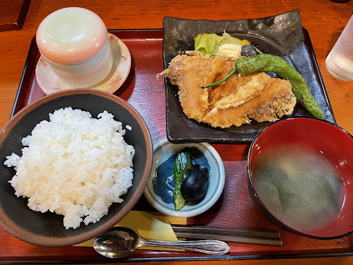 Read moreよく行く五泉のよく通る道でいつも気になっていたお店にお邪魔しました。 少し暗めの店内でしたが感じの良いお母さんに日替わり定食を注文。 メインの品が美味しいのは見た通り、付け合わせの茶碗蒸しは熱々、漬物もお店でしっかり漬けられたんだろうな?という美味しさ。 大満足のランチになりました!