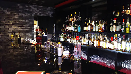 店内は赤と黒を基調とした色合いで統一されており、赤の絨毯と椅子が映えたこだわりある内装が目を引きます。