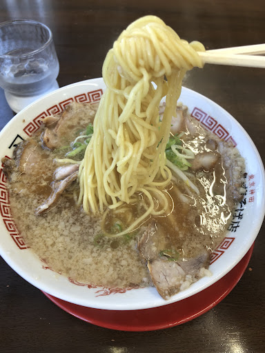 Read more背脂チャッチャ系は滅多に無いので、前日から期待して連れを誘っての初来店! メニューはネットでチェック済みなので、こってり醤油の大盛1点買い(笑) まだ昼前での満席には、びっくりしましたが、人気店なのかな? 着座して、20少々で着丼。 最初は背脂が効いてるから、分かりませんでしたが、ちょっと醤油がたってる感じ(汗) 麺は中太位のストレート麺ですが、スープの絡みのせいか、麺が勝って一体感が無い感じでした! 縮れの方が絡みも良さそうだけど、麺を味わって欲しいと言う狙いなのかなぁ(汗) 青森市寄りの、醤油濃いラーメンって感じですね⤵ 背脂と一緒に飲んでも、醤油濃さ感じて、スープは余り飲めませんでした(汗) 他の方の口コミ見たら、長尾系列と有ったので、納得(笑) 売りは味噌なのか、幟が目立ちましたね。