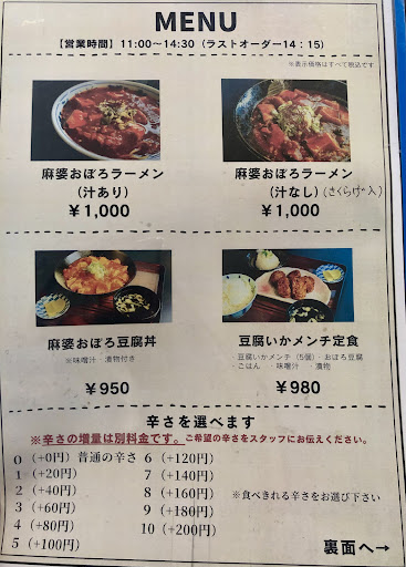 肝心の麻婆ラーメンは、美味しかったですが、 味と量とお店の雰囲気等のバランスに 価格が千円ならリピートはないです。