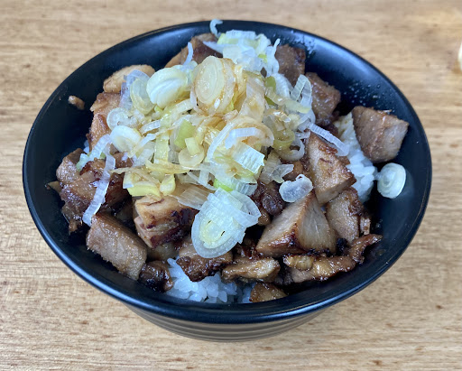チャーシュー丼の普通サイズを頼んだのですが量はかなりあります。おそらく、茶碗1.5〜2杯はあると思います。ガッツリ食べたい、もしくは2人でシェアするならちょうど良いです。1人でラーメンと食べるならミニにしておいた方が無難です。ニンニクが効いた甘口醤油で不味いわけないです。調理中の匂いだけでも美味いです。
