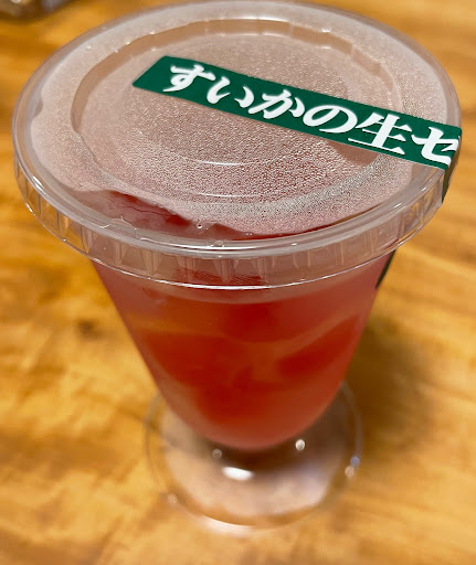 【購入】 ◆西瓜の生フルーツゼリー/円/税込 透明の甘いゼリー。 これがプルプルした食感です。 そして、甘い西瓜とゼリーを同時に食べると幸せ。