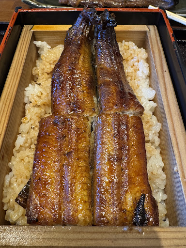 ※鰻重 上 5280円 ご飯大盛り無料 フタから鰻がはみ出しています! 鰻の身の厚い部分は柔らかく、薄い尾の部分はカリカリ!美味しいです。 タレも薄く無く、しつこくなく!うまい! そしてご飯は熱々!お重の下が空洞になってる…! 別にとろろを頼んでいたのですが、鰻にのせて食べる時は、別のお皿にとってから、とろろをのせて食べてください! お重の下が空洞になってるので、下まで落ちてしまうので!と説明される! 熱々の理由はこの空洞なのか? 何故か知りたかったがわかりませんでした(笑) 熱々なので汗をかきながら食べました。 でも、熱々大好きなので、お米もとっても美味しく感じました!