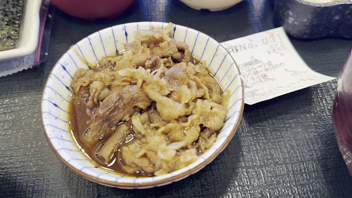 This place is great for a quick and inexpensive meal. When you first come in there are 2 machines where you must place your order. Be careful because 1 machine only accepts ¥1000 & ¥2000 bills only. The other will accepts up to ¥10000 bills. Once you select what you want to eat and pay at the machine find yourself a seat. A worker will then come to you to collect your food ticket. The service is quite fast and the workers...